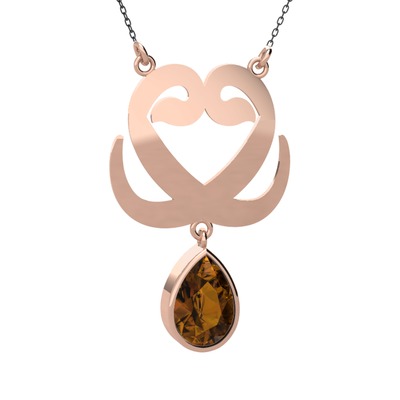 Dumanlı kuvars 18 ayar rose altın kolye (40 cm gümüş rolo zincir)