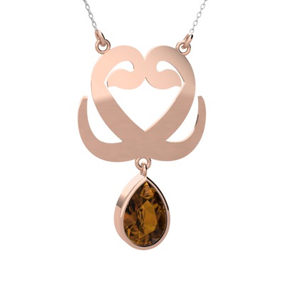 Dumanlı kuvars 18 ayar rose altın kolye (40 cm gümüş rolo zincir)