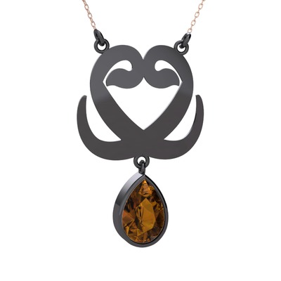 Dumanlı kuvars 925 ayar siyah rodyum kaplama gümüş kolye (40 cm rose altın rolo zincir)