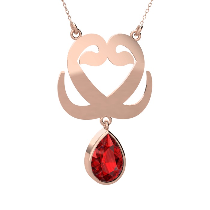 Garnet 8 ayar rose altın kolye (40 cm rose altın rolo zincir)