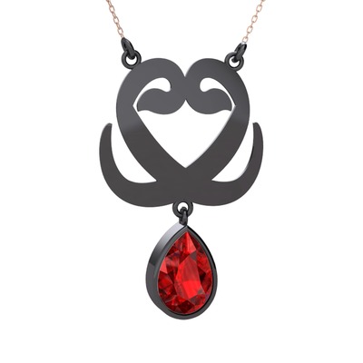 Garnet 925 ayar siyah rodyum kaplama gümüş kolye (40 cm gümüş rolo zincir)