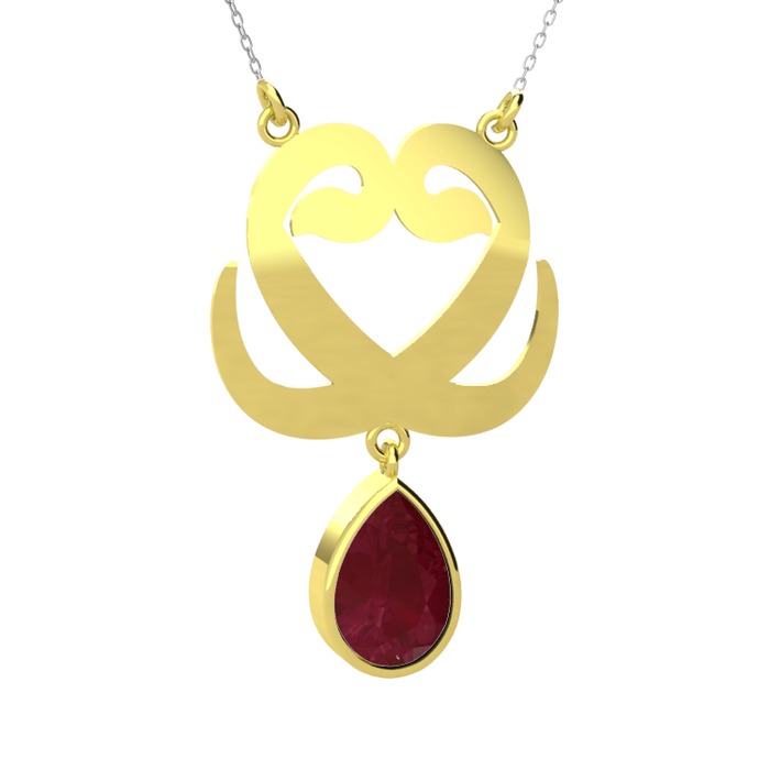 Kök yakut 18 ayar altın kolye (40 cm gümüş rolo zincir)