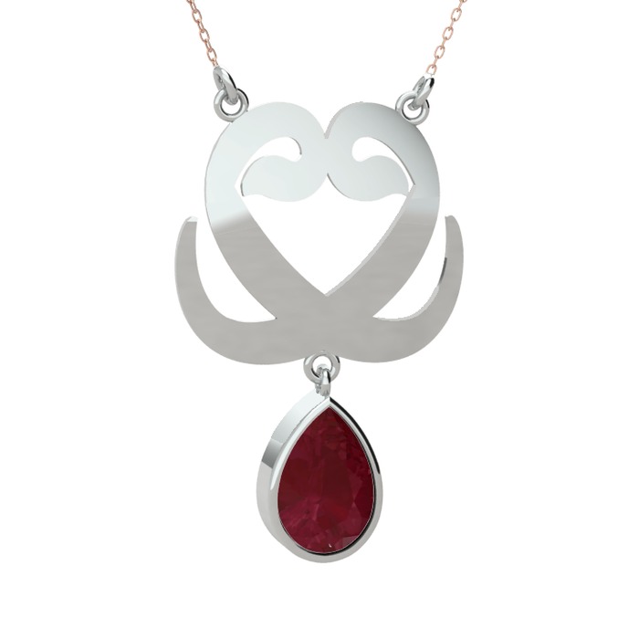 Kök yakut 925 ayar gümüş kolye (40 cm rose altın rolo zincir)
