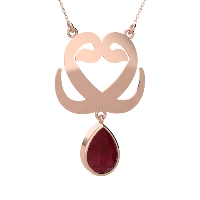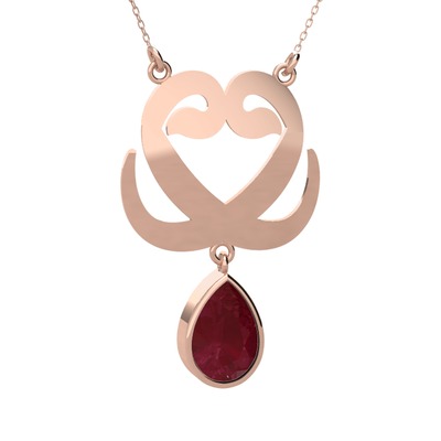 Kök yakut 925 ayar rose altın kaplama gümüş kolye (40 cm gümüş rolo zincir)