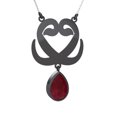 Kök yakut 925 ayar siyah rodyum kaplama gümüş kolye (40 cm beyaz altın rolo zincir)