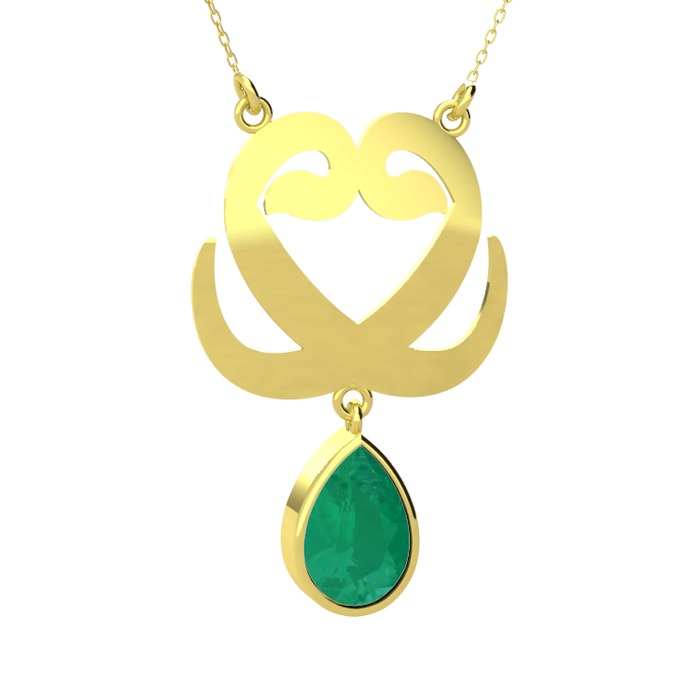 Kök zümrüt 18 ayar altın kolye (40 cm altın rolo zincir)