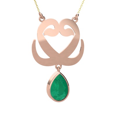 Kök zümrüt 18 ayar rose altın kolye (40 cm altın rolo zincir)