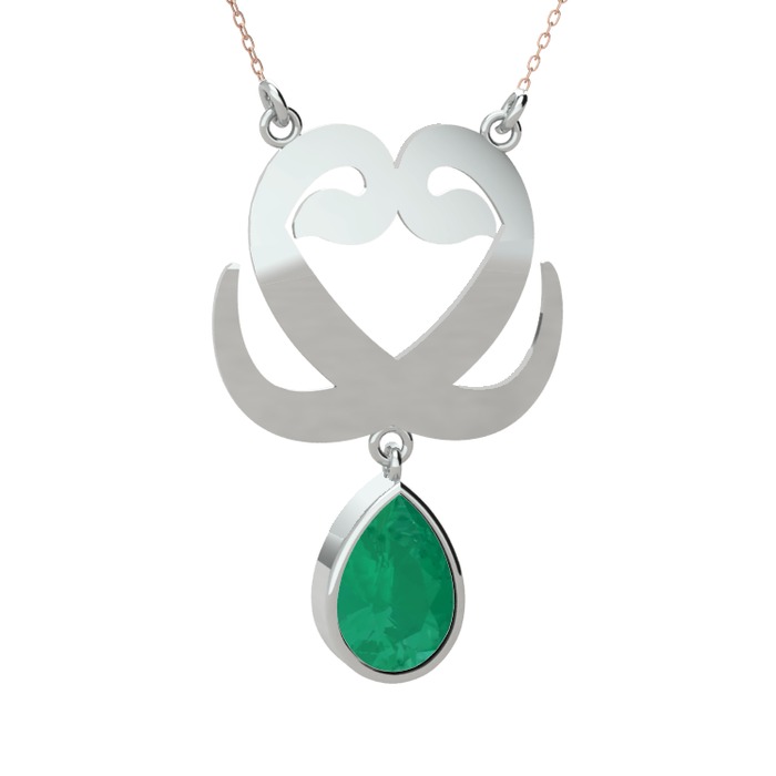 Kök zümrüt 8 ayar beyaz altın kolye (40 cm rose altın rolo zincir)