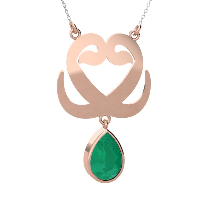 Kök zümrüt 8 ayar rose altın kolye (40 cm gümüş rolo zincir)