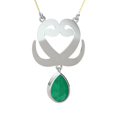 Kök zümrüt 925 ayar gümüş kolye (40 cm altın rolo zincir)