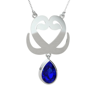 Lab safir 18 ayar beyaz altın kolye (40 cm beyaz altın rolo zincir)