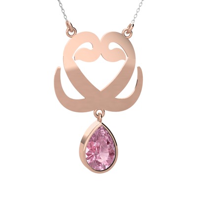 Pembe kuvars 14 ayar rose altın kolye (40 cm gümüş rolo zincir)