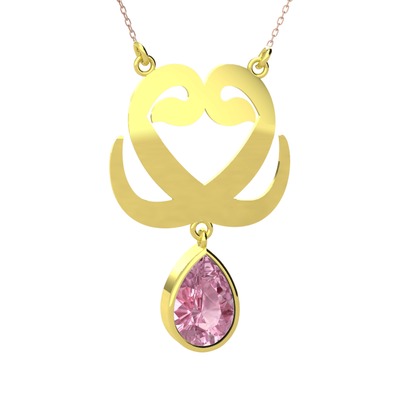 Pembe kuvars 18 ayar altın kolye (40 cm rose altın rolo zincir)