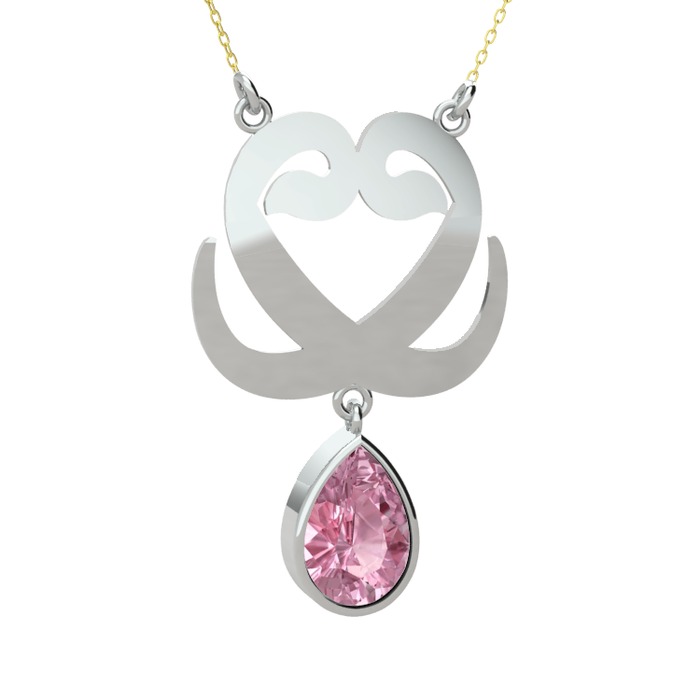 Pembe kuvars 8 ayar beyaz altın kolye (40 cm gümüş rolo zincir)