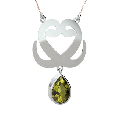 Peridot 8 ayar beyaz altın kolye (40 cm gümüş rolo zincir)