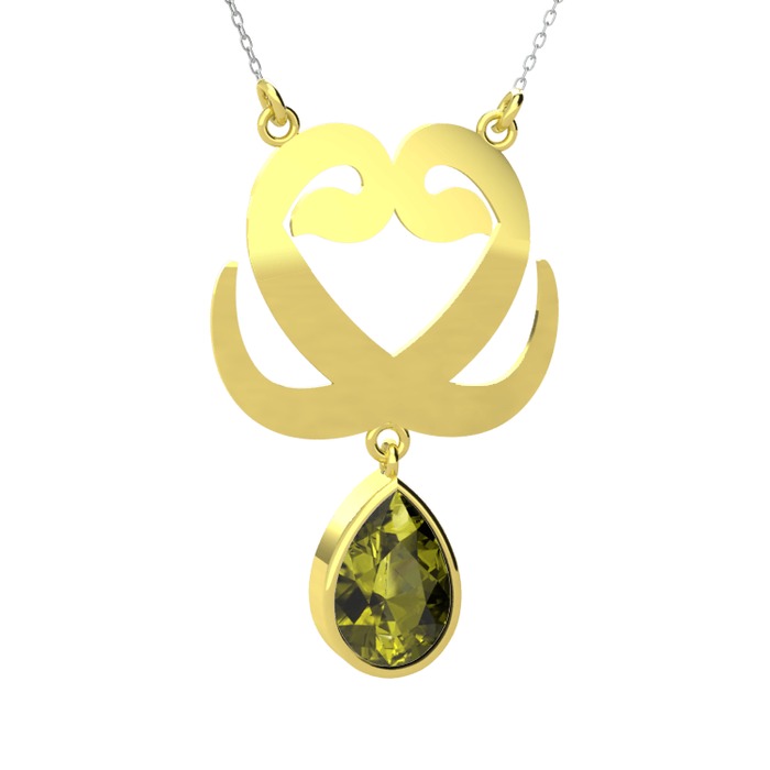 Peridot 925 ayar altın kaplama gümüş kolye (40 cm gümüş rolo zincir)