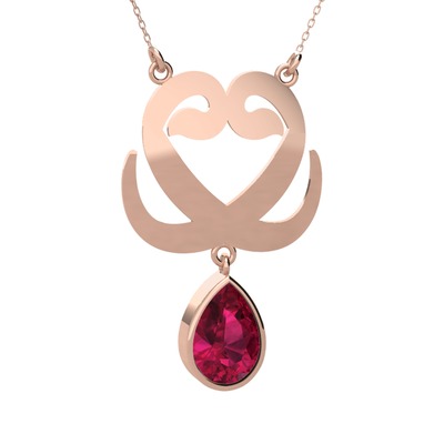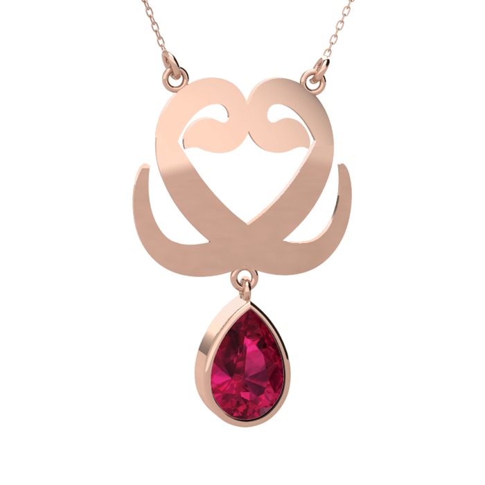 Rodolit garnet 925 ayar rose altın kaplama gümüş kolye (40 cm rose altın rolo zincir)