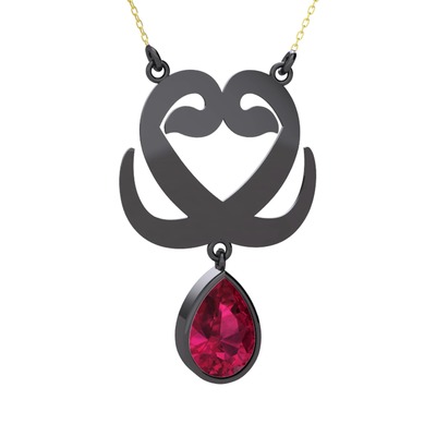 Rodolit garnet 925 ayar siyah rodyum kaplama gümüş kolye (40 cm gümüş rolo zincir)