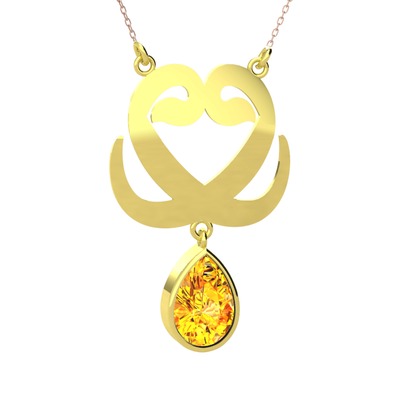 Sitrin 8 ayar altın kolye (40 cm rose altın rolo zincir)
