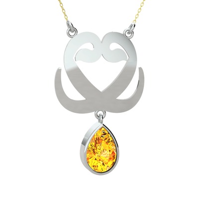 Sitrin 8 ayar beyaz altın kolye (40 cm altın rolo zincir)