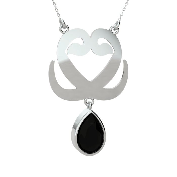 Siyah zirkon 18 ayar beyaz altın kolye (40 cm beyaz altın rolo zincir)