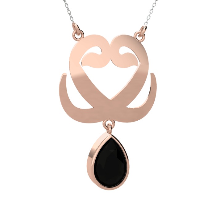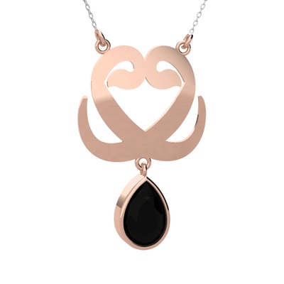 Siyah zirkon 925 ayar rose altın kaplama gümüş kolye (40 cm beyaz altın rolo zincir)