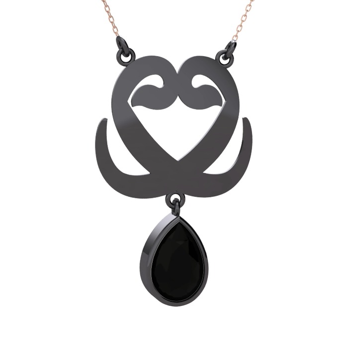 Siyah zirkon 925 ayar siyah rodyum kaplama gümüş kolye (40 cm rose altın rolo zincir)