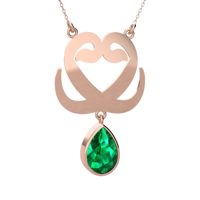 Yeşil kuvars 14 ayar rose altın kolye (40 cm rose altın rolo zincir)
