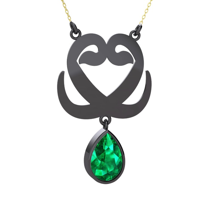 Yeşil kuvars 925 ayar siyah rodyum kaplama gümüş kolye (40 cm altın rolo zincir)