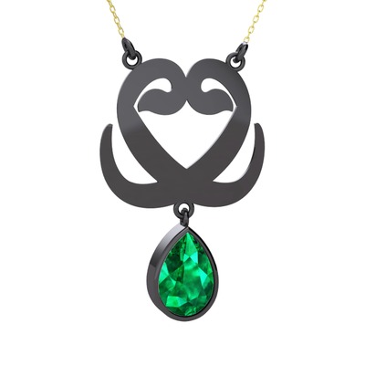 Yeşil kuvars 925 ayar siyah rodyum kaplama gümüş kolye (40 cm gümüş rolo zincir)