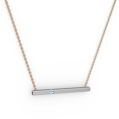 Akuamarin 14 ayar beyaz altın kolye (40 cm rose altın rolo zincir)