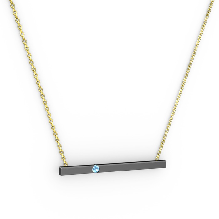 Akuamarin 925 ayar siyah rodyum kaplama gümüş kolye (40 cm altın rolo zincir)