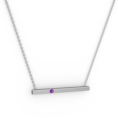 Ametist 8 ayar beyaz altın kolye (40 cm gümüş rolo zincir)