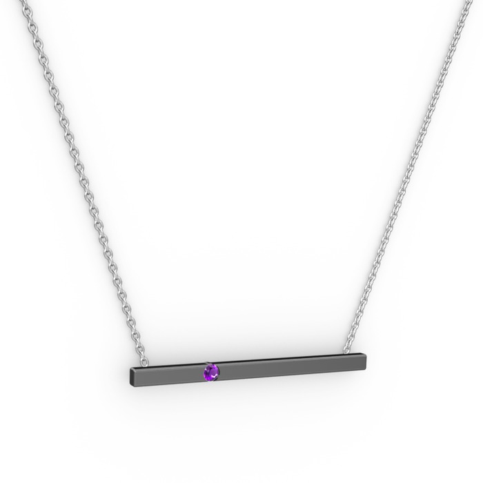 Ametist 925 ayar siyah rodyum kaplama gümüş kolye (40 cm beyaz altın rolo zincir)