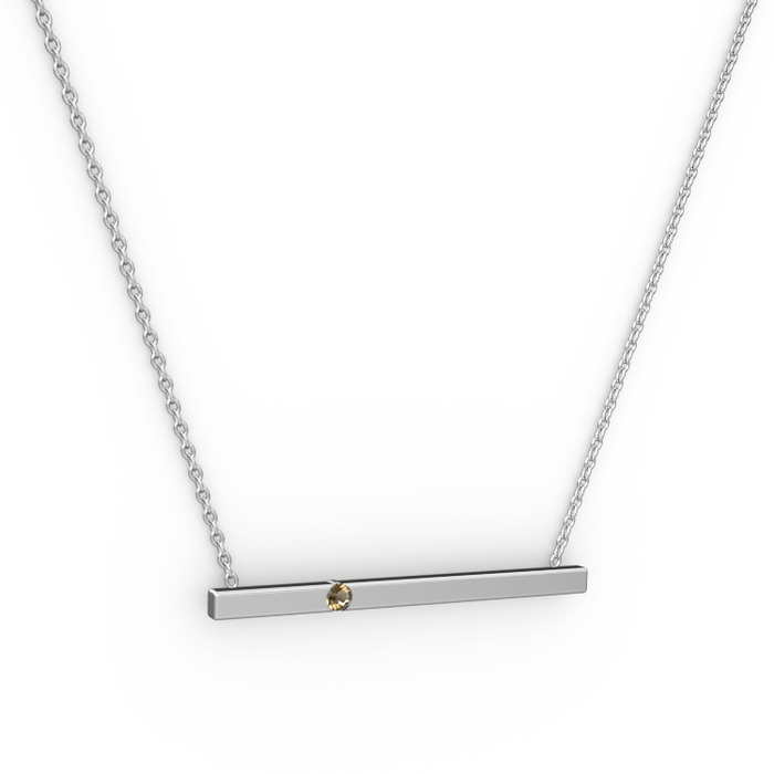 Dumanlı kuvars 8 ayar beyaz altın kolye (40 cm beyaz altın rolo zincir)