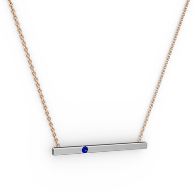 Lab safir 14 ayar beyaz altın kolye (40 cm rose altın rolo zincir)