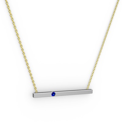 Lab safir 18 ayar beyaz altın kolye (40 cm gümüş rolo zincir)