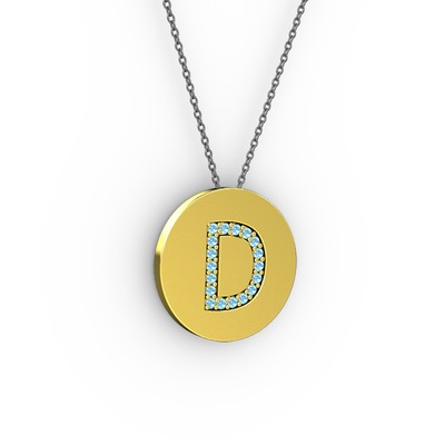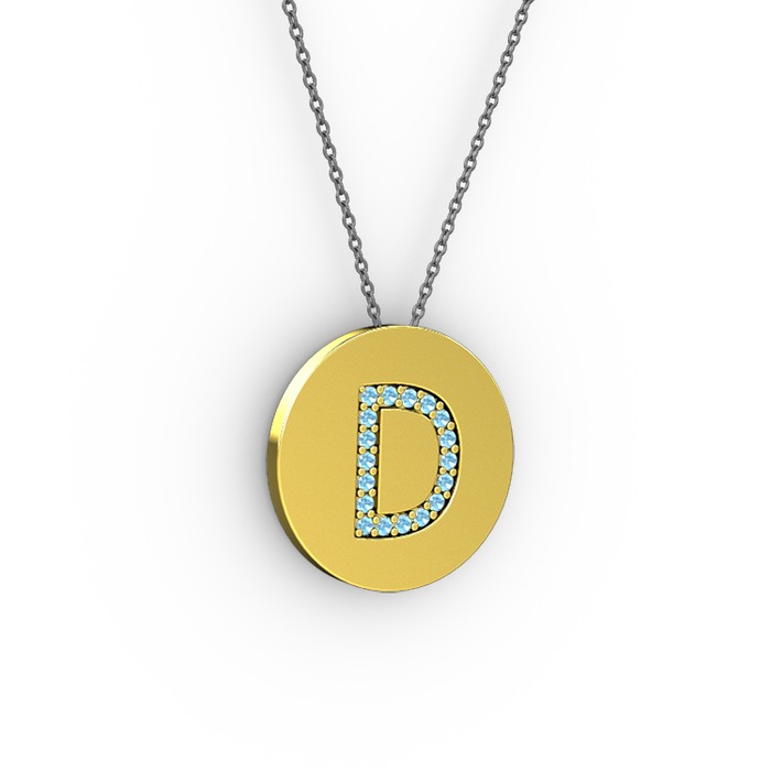 Akuamarin 18 ayar altın kolye (40 cm gümüş rolo zincir)