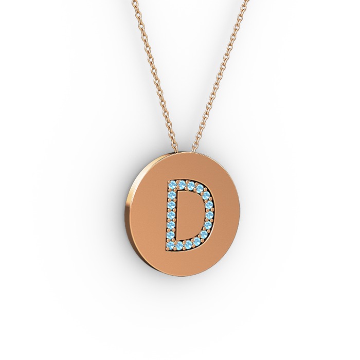 Akuamarin 18 ayar rose altın kolye (40 cm gümüş rolo zincir)
