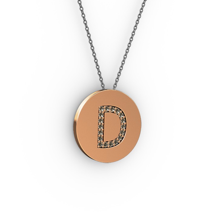 Dumanlı kuvars 18 ayar rose altın kolye (40 cm gümüş rolo zincir)