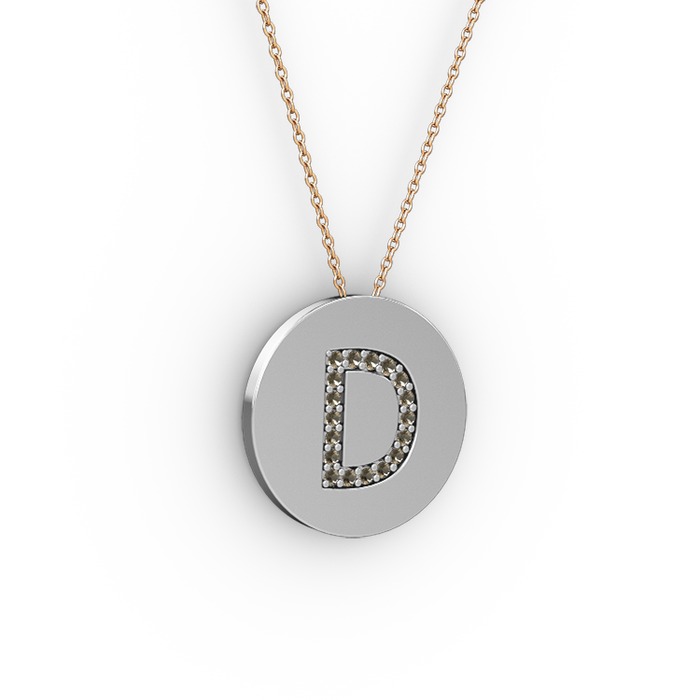 Dumanlı kuvars 8 ayar beyaz altın kolye (40 cm rose altın rolo zincir)