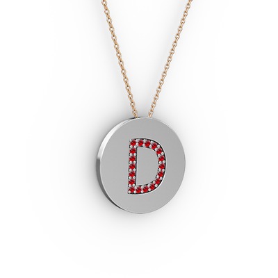 Garnet 18 ayar beyaz altın kolye (40 cm rose altın rolo zincir)