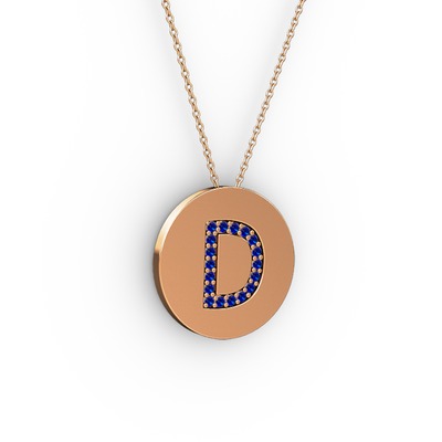 Lab safir 925 ayar rose altın kaplama gümüş kolye (40 cm rose altın rolo zincir)