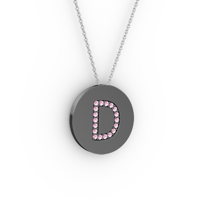 Pembe kuvars 925 ayar siyah rodyum kaplama gümüş kolye (40 cm gümüş rolo zincir)