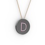Pembe kuvars 925 ayar siyah rodyum kaplama gümüş kolye (40 cm rose altın rolo zincir)