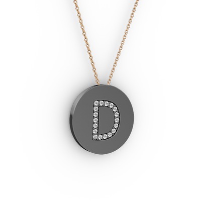 Pırlanta 925 ayar siyah rodyum kaplama gümüş kolye (0.1584 karat, 40 cm rose altın rolo zincir)