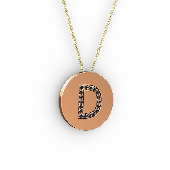 Siyah zirkon 14 ayar rose altın kolye (40 cm altın rolo zincir)