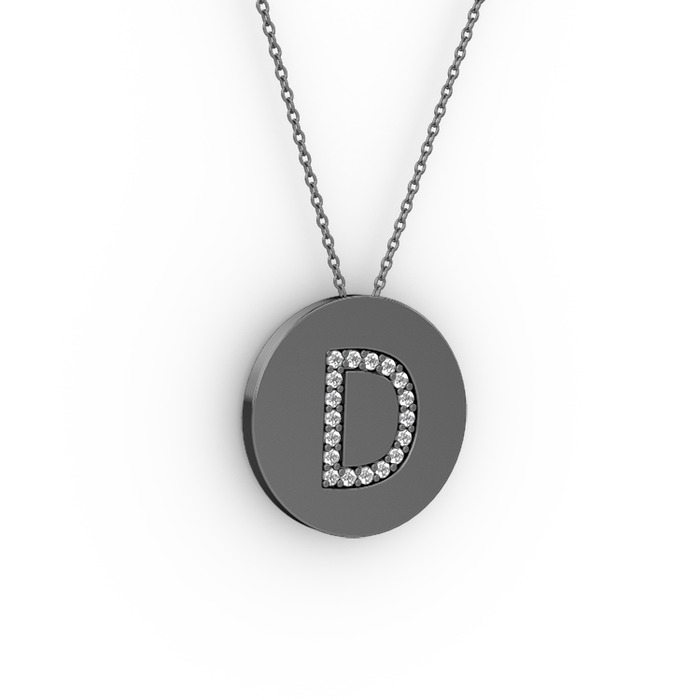Swarovski 925 ayar siyah rodyum kaplama gümüş kolye (40 cm gümüş rolo zincir)
