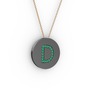Yeşil kuvars 925 ayar siyah rodyum kaplama gümüş kolye (40 cm rose altın rolo zincir)