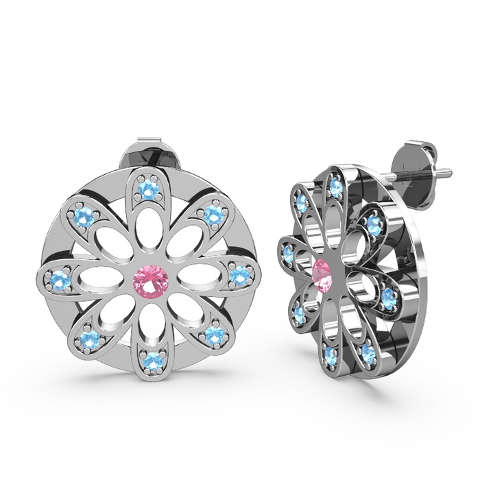 Akuamarin ve pembe kuvars 14 ayar beyaz altın küpe